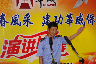 演講比賽中,選手們結(jié)合各自工作實際或親身經(jīng)歷,用發(fā)自肺腑的心聲、鏗鏘有力的話語、富有激情的演講,詮釋了公司員工對華威保安的深厚感情,表達(dá)了廣大員工與企業(yè)同呼吸、共命運,以主人翁的姿態(tài),肩負(fù)起企業(yè)發(fā)展的使命感和責(zé)任感,以及對企業(yè)改制后美好未來的期盼;展示了華威保安良好的風(fēng)采和精神面貌。選手們態(tài)度認(rèn)真,表情自然、大方,他們精彩的演講與迸發(fā)的激情不時贏得觀眾的陣陣掌聲。經(jīng)過激烈角逐,保安駕校教練員張慶獲得了一等獎;日照分公司尹姍姍、犬業(yè)公司張凡貞、上海分公司荀均建獲得二等獎;勞務(wù)公司的孔慶震、賈傳東、顏景環(huán)、上海分公司李奉才、孔哲獲得三等獎。