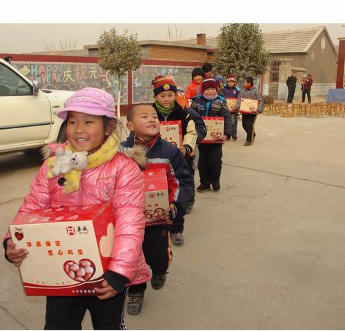 “愛心雞蛋”工程是在集團公司首席經濟顧問陳湛勻教授及集團董事長、總裁荀金慶倡導并發起的,旨在讓孩子每天吃上一個雞蛋,倡導健康的生活理念,讓全社會都來關心孩子的健康成長。愛心雞蛋工程將定期走進校園,不僅為孩子們送上營養的雞蛋,而且能夠從小培養他們的愛心,讓他們有能力將愛心傳遞、擴展、傳播,讓這枚小小的雞蛋孵化出愛的生命力,“愛心雞蛋”就能由小雞蛋凝結成大金蛋。