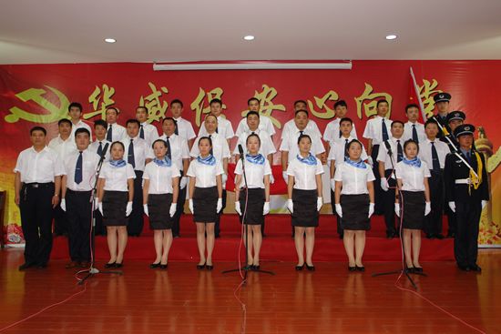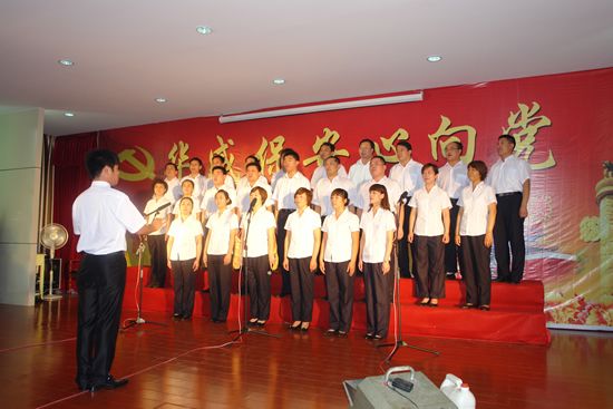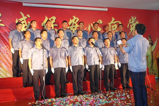 為慶祝中國共產黨成立90周年,展示華威保安奮發向上的精神風貌,振奮精神,鼓舞斗志,7月1日上午,山東華威保安集團隆重舉行了慶祝建黨九十周年暨“華威保安心向黨”唱紅歌比賽活動。曲阜分公司、濟寧分公司、行管、保險公司等8個代表隊近300人參加了比賽。集團公司董事長、總裁荀金慶發表了熱情洋溢的致辭。
